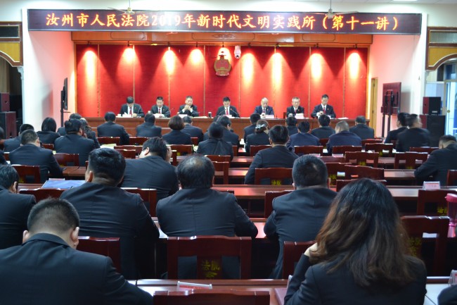 2019年11月11日下午,汝州市人民法院举办2019年新时代文明实践所第十一讲,党组书记、院长杨长坡带领全体干警阅读《人民法官李庆军》一书。