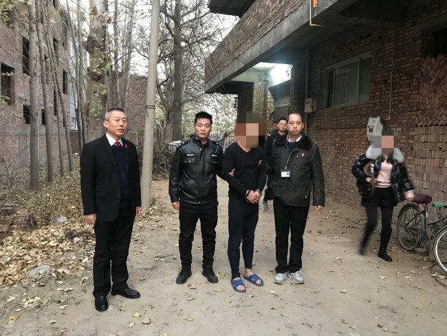 第三行动小组在党组成员、政治部主任亓建文的带领下首先来到肖庄被执行人王某家门口,刚刚到达王某家门口时,听到里面传来炒菜的声音,被执行人王某的母亲竟然玩起了“缓兵之计”,给他儿子拖延时间,让其赶紧躲藏起来。过了好一会才把门打开,并谎称王某不在家,经验丰富的执行干警发现被执行人的被窝发现还有余温,就断定被执行人肯定在家,立刻展开搜查,终于在三楼楼梯下的角落里发现被执行人王某,这么冷的天气他只穿着秋衣秋裤抱着衣服躲在墙根旁瑟瑟发抖,被执行人费尽心机终难逃法网。随后,党组成员、政治部主任亓建文带领执行干警来到庙下镇某村、临汝镇某村内查找和拘留涉案被执行人,并对相关被执行人财物予以扣押。