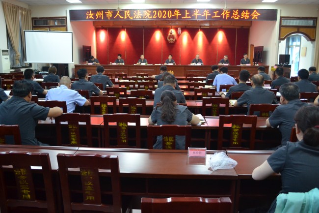 2020年7月7日上午,汝州市人民法院在一号审判庭召开2020年上半年工作总结会,会议对2020年上半年工作进行全面总结,安排部署下一步重点工作。会议由党组副书记、常务副院长袁黎晓主持,班子成员和部门正副职及员额法官参加会议。