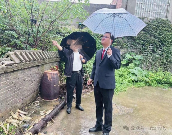 2025年9月28日一大早,天空就飘起了小雨,临近约定时间,雨势还在不断加大,路面渐渐积起水洼,出行变得十分不便。书记员担心雨天勘验存在安全隐患,也怕影响勘验精度,提议是否推迟。但薛晓静法官考虑到双方当事人早已为此次勘验腾出时间,且案件拖延可能会让当事人的焦虑情绪加重,当即决定:“按原计划进行,不能让群众等,更不能让案件关键事实因天气而搁置。”随后,杨法官、薛法官带着勘验工具准时赶往现场。到达勘验现场后,两位法官顾不上擦拭身上的雨水,先仔细查看了现场环境,记录细节,还向双方当事人询问合同中关键信息。整个过程中,始终保持着严谨的态度,对双方当事人提出的疑问耐心解答,用专业知识向他们说明勘验的目的与重要性,让当事人清晰了解每一个勘验环节的意义。