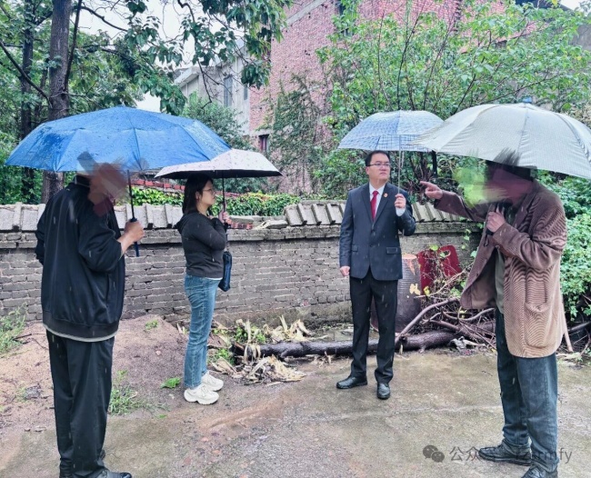 “太谢谢法官了!这么大的雨还特地过来帮我们查情况,这份认真劲儿,我们心里特别踏实!”当事人芦某看着浑身沾着雨水却依旧专注工作的杨林辉法官与薛晓静法官,感激地说道。近日,一场突如其来的降雨打乱了原定计划,却丝毫没有影响两位法官对案件事实的探寻—— 为查清承包合同的关键事实,汝州市法院庙下法庭杨法官、薛法官冒雨赶赴现场勘验,用严谨与负责诠释着司法为民的初心。