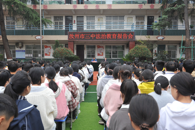 “我们学校学生处在青春叛逆期,急需加强法治教育,能不能请你们来给学生上一堂法治教育课。”汝州市第三初级中学的老师在电话那头恳切的说道。接到这通电话后,政治部宣教团队当即表示:“普法工作是我们的应有之义,更是应尽之责,感谢您的邀请,我们一定全力配合上好这堂普法课!”