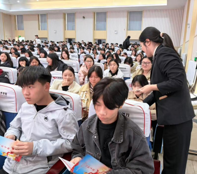 在深刻的案例警示后,李法官并未停留在“风险提醒”,更向学生传递了面向未来的积极力量。她明确指出,“通往幸福明天的秘诀是读书”,鼓励学生珍惜校园时光,以知识武装头脑、拓宽眼界,用学习为人生搭建更高的平台。此外,李法官还引用《5%的改变》中的理念,引导学生理解“微小的积极行动能带来巨大的人生转变”,从主动拒绝霸凌、友善对待同学、认真课堂上,同学们认真聆听、勇于回答,在一问一答中对善良的力量、霸凌的后果、读书的启迪、法治的意义等都有了更加深刻地理解。课后,我院工作人员向广大学生发放了民法典等普法宣传手册,便于同学们掌握更为全面的法律知识,学习法律,用法律武装、保护自己。