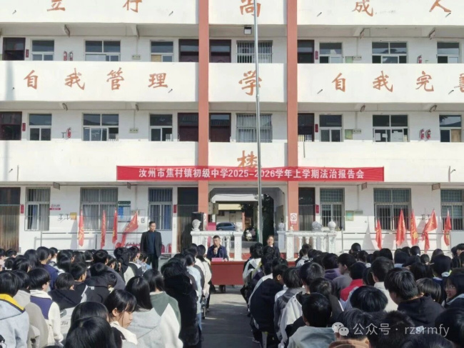 2025年11月12日,阳光明媚,云淡风轻。为进一步增强青少年法治意识,筑牢校园法治安全防线,汝州市法院行政审判庭与庙下人民法庭联合走进汝州市焦村镇初级中学,为全校师生送上了一场生动实用的法治报告会。汝州市焦村镇副镇长秦宇华应邀参加活动。