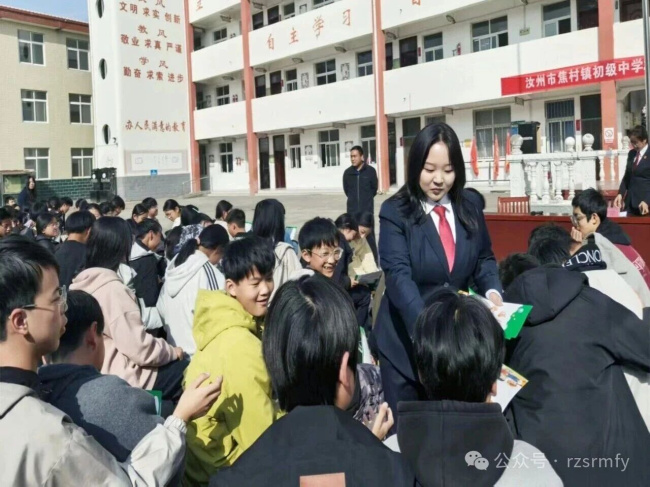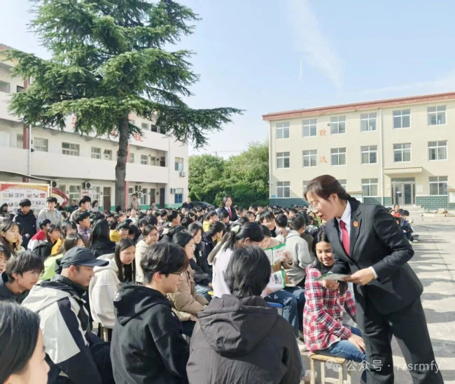 在互动问答环节,赵蒙蒙法官设置问题情景“遇到这类问题怎么办时”,同学们积极举手回答,现场气氛热烈活跃。活动最后,法官赵蒙蒙和法官助理陈悦发放了《送法进校园》宣传手册,鼓励同学们学会用法律武器维护自身合法权益。