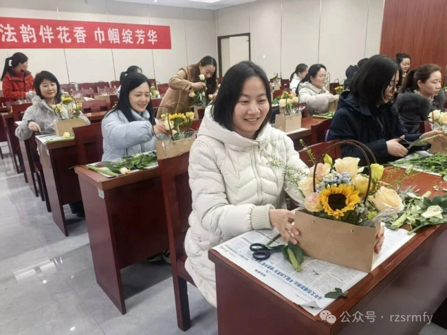 活动现场布置温馨雅致,鲜花芬芳馥郁。我院特别邀请花艺指导师提供专业指导,助力活动顺利开展。在花艺老师的耐心指导下,大家从选材、修剪、造型到配色,一步步感受插花艺术的魅力。女干警们静心投入、巧手创作,在一折一剪、一插一摆中,将普通的花枝组合成错落有致、意境优美的花艺作品。现场气氛轻松愉悦,交流声、欢笑声此起彼伏,处处洋溢着浪漫与温暖。