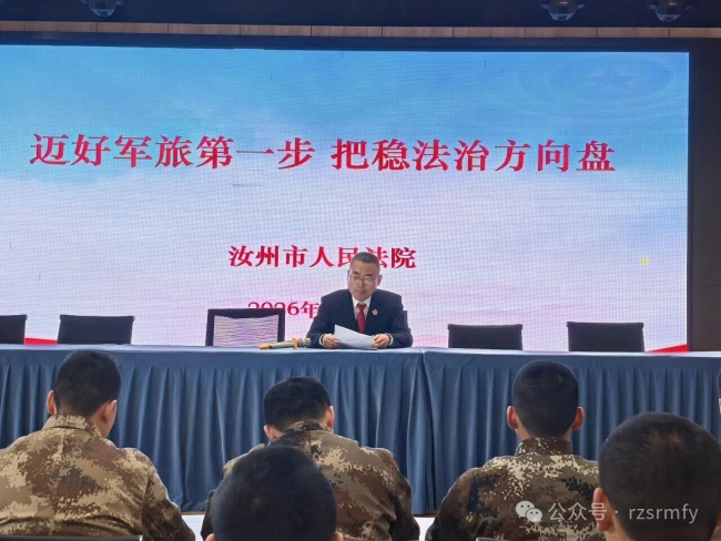 为提升新兵法治意识,切实维护军人军属合法权益,筑牢国防建设法治根基,2026年3月12日上午,汝州市人民法院组织干警走进汝州市役前教育训练基地开展“送法进军营”专题普法活动,为即将入伍的新兵送上一堂生动实用的法治教育课,助力新兵迈好军旅生涯第一步。