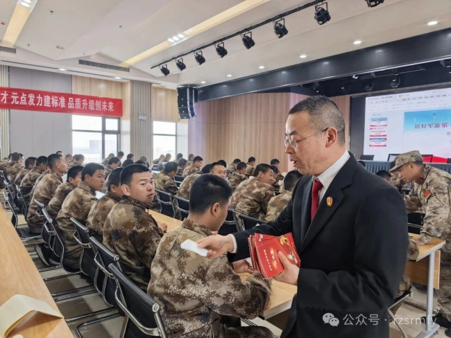 课堂上,新兵们认真聆听、积极记录,法院干警还发放了《中华人民共和国民法典》等普法资料和“涉军维权联系卡”,为新兵们日常学法、用法提供实用资料,让法治知识在军营落地生根。