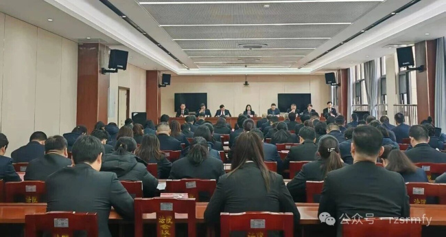 2026年3月16日上午,汝州市法院在五楼会议室召开审判执行质效工作推进会。会议由党组副书记、副院长张泰东主持,党组书记、院长楚军荣出席会议并讲话,班子成员、全体干警参加会议。